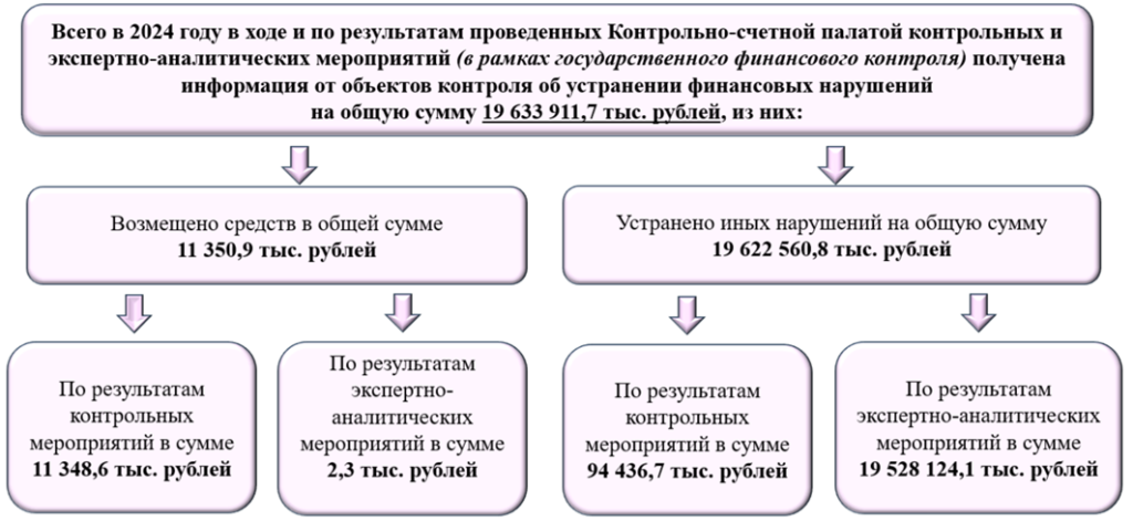 Изложенные выше меры реагирования способствовали устранению финансовых нарушений, выявленных Контрольно-счетной палатой.